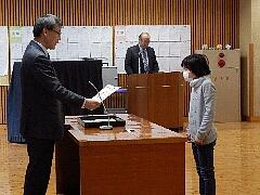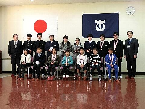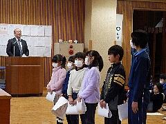 本校からは、第26回全日本少年フットサル栃木県大会優勝の菅俣直希(6年)さんがメダルを、第24回ジュニア知事の秋田梨々子さん(4年)が盾を贈呈されました。