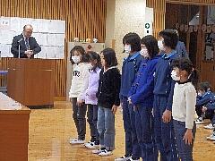 今回は、交通指導員の大久保信雄さん、大瀧挌さん、続谷駐在所の保々琢磨さん、スクールガードの上野仁さん、平野篤子さん、読み聞かせの皆川栄子さん、仲山怜子さん、大貫幸子さん、平野敦子さん、神野昌子さん、薄根夏代さん、早川芽意さん、武者絵指導の大畑耕雲さんがお越しくださいました。