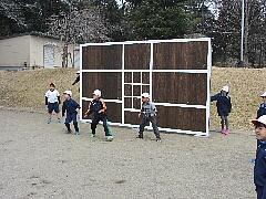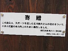 小貝中央小学校の卒業生である、故石川倫大さんの御両親様(石川栄壽教育長・石川雅子前小貝小教頭)から頂戴しました御寄付を基に、シューティングボードを設置いたしました。スポーツマンであった倫大さんの遺志を継いで、子どもたちの体力向上に役立つ物をということで検討し、倫大さんがサッカー少年だったことと、子どもたちの投げる力が年々低下していることから、ボールを投げて当てたり、ボールを蹴って当てたりできる、シューティングボードを校庭の北西すみに設置いたしました。