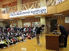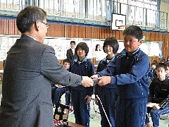 最初に健康給食委員会から、1年間衛生検査で全て〇だった児童に「みだしなみりっぱ賞」が授与されました。その後、6か年皆勤賞、町長賞メダル、書初中央展、健康優良児、スキー、バレーボール、なわとび名人、課題図書読破、あいさつ名人の表彰を行いました。詳細は、小貝っ子だよりでお知らせします。