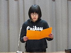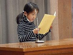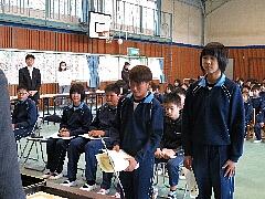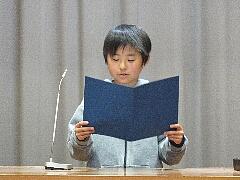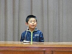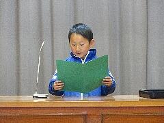 学年代表の今学期の反省と次年度の抱負を、1年生は石原弥華さん、2年生は小堀泰知さん、3年生は中野結咲さん、4年生は平野詩季さん、5年生は小堀雄大さんが大きな声で発表しました。