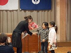それぞれ、勤務年数は違いますが、小貝小、そして子どもたちのために熱心にご指導くださった皆さんです。代表の子どもたちがお別れの作文を読み、花束を贈って感謝の気持ちを表しました。3名の皆さん、お世話になりました。今後のご多幸とご活躍を祈念します。