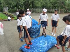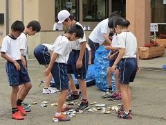 今日は、朝からたくさんの子どもたちが手にアルミ缶をぶら下げて登校してきました。