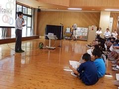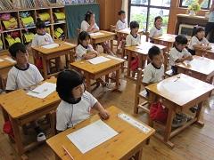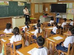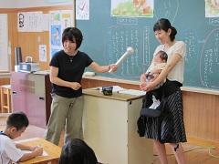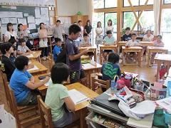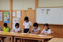 授業参観で1年生は国語「おおきなかぶ」の音読劇を、2年生は生活科で行った町体験で気づいたことの発表を、3年生は音楽でリコーダーの練習の様子を、4年生は算数で割り算の学習を、5年生は総合で「サシバ新聞」の発表を、6年生は国語で話し合いの進め方の様子をご覧いただきました。