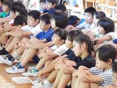 終業式では、1日も休まなかった人、元気にあいさつができた人、勉強を頑張った人、一生懸命に掃除をした人、優しくできた人、大きな声で歌を歌えた人、スポーツや作品展で入賞した人に手を挙げてもらいました。全員がいずれかで挙手できたので、互いに拍手で讃え合いました。9月1日には、あふれる笑顔と成長した姿で元気に登校してほしいと話しました。