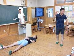 魚釣りに行って川に落ちたという想定の劇や紙芝居を見ながら、とっさの対応の仕方を学びました。キーワードは「浮かんで待つ」だそうです。一生涯、そういう経験をせずにすむのが一番ですが、いざという時のための備えとして大切な訓練となりました。