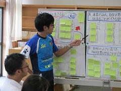 研究主題の中にある「よりよく生きる」とはどんなことか。「互いに深め合う」とはどんなことか。目指す児童像の「本音で話し、自分の思いを相手に伝える事ができる児童」とは、どんな児童か。「自他の良さに気づき、相手を思いやることができる児童」とはどんな児童か。そして、「教材研究」や「道徳の授業」を行う上で課題となっていることや悩み、その対策について、グループで話し合い発表し、共通理解を図りました。