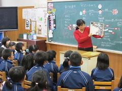 1年生は大貫さんが「ろくべえ まってろ」「わたしたちうんこともだち」、2年生は皆川さんが「てんぱたん てんぱたん」「ともだちできたよ」、3年生は仲山さんが「ひみつだから」「ブレーメンのおんがくたい」、4年生は小松さんが「いえない いえない」「紙芝居 きんのがちょう」、5年生は松尾さんが「ミロとまほうのいし」「トラネコとクロネコ」「ねこづめのよる」、6年生は三武さんが「シベリアの豆の木(香月泰男物語)」を読んでくださいました。