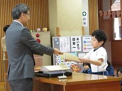 今日は、県学生音楽コンクール銅賞の5年小峰優希さん、芳賀教育美術展芸術祭賞の2年石川帆空さん、同じく入選の1年平野凛さん、1年町井寿希さん、3年大畑希実さん、4年髙德藍維さん、4年平野優奈さんと、先日紹介した茂木地区合同表彰式で表彰された3名の児童に賞状を手渡しました。