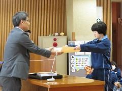 学校関係では防犯ポスター、地域安全マップの入選者表彰、篤行善行少年表彰がありました。本校からは、6年の大畑穂佳さんが地域安全マップ金賞、6年の山田航嵩さんと薄根さくらさんが篤行善行少年表彰を受けました。