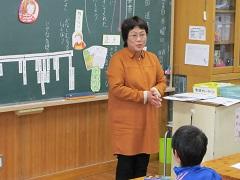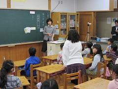 高野先生が人形のウサギに聴診器をあて、心臓の音がしないことから、「命」について気づかせてくれました。また、人間がされて嫌な事はウサギや他の動物も嫌なこと。人間がされて嬉しいことは動物も嬉しいという話しをしていただきました。学校のウサギ当番が今まで以上に楽しみになったようです。道徳教育との関連は「生命の尊さ」です。