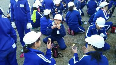 塩づくり、つぼ焼き芋づくりの活動が終了し、室内に戻りました。午前中の体験の成果か、午後のかまどでの焚き付けはとても上手で、早く塩ができました。最後に焼きいもを美味しくいただきました。