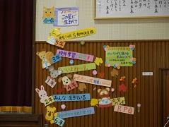 今月は、小貝っ子のつどいで子どもたちも発表した外来生物(外来種)から考えました。人間の都合で持ち込まれ、人の都合で駆除される外来生物。人間のこうした勝手な行為は、他の面でも見られます。友だち関係などでも、仲良しだった友だちの嫌な面が見えると、避けたり話をしなくなったりすることがあります。他にも家族のことや、地域のこと、外国の人たちのことなど、自分の心と向き合ってじっくり考え、心の根っこを深く伸ばそう。と話しました。今日も、手をあげて感想を発表してくれました。