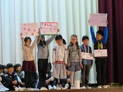 フィナーレは会場にいる全員で「ふるさと」を歌いました。短い時間を有効に活用し頑張って準備した成果を発表でき、子どもたちも達成感を味わうことができました。道徳教育との関連は「国や郷土を愛する態度」「自然愛護」です。