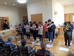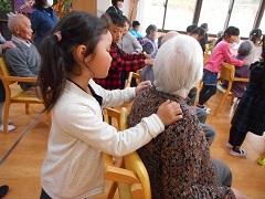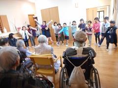 最初に、鍵盤ハーモニカの合奏を披露したり、クイズを出したりして和やかな雰囲気づくりをしました。後半は、握手をしたり、肩たたきをしたり、顔を近づけてお話を聞いたりしました。