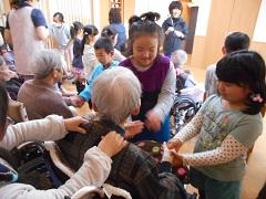 11月には全学年が福祉交流を行います。学区にある2個所の福祉施設を訪問し、入所されているおじいちゃんやおばあちゃんとのふれあい交流を深めます。