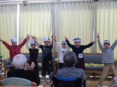 1年生は杉の樹園、2年生がなごみでした。1年生は歌を歌ったり、肩たたきや握手などをして、元気な姿をお見せしてきました。2年生は鍵盤ハーモニカやカスタネットなどの演奏や、桜川の生きものについて発表しました。一緒に折り紙もして楽しい時間を過ごしました。低学年の子どもたちのやさしさやかわいさに高齢者のみなさんも満面の笑みで喜んでいただけたようです。