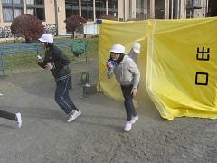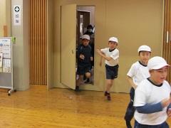清掃時間の終わり頃に地震が起き、火災が発生したという想定です。約3分で全員が避難できました。