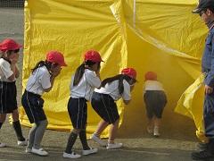 避難訓練の後に、煙道体験、初期消火の体験、防火扉の通り方の訓練を行いました。最後に6年の川堀湧紀さんが児童代表で、お礼の言葉を述べました。その中で「自分の命は自分で守ります。」と力強く発表しました。ご指導いただいたことを生かし、さらに防災意識を高めていきたいと思います。