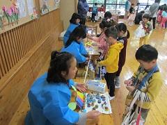 今年は銀行でお金をもらうところから始まり、色々なゲームをしたりお店で買い物をしたりしました。1年生が時間をかけて一生懸命に準備したお店屋さんやおみこしかつぎ等の発表を、園児たちも一緒に楽しんでくれたようです。また、小学校がさらに近い存在になってくれたのではないでしょうか。