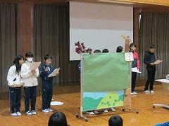 読書月間の最大のイベントが読書まつりです。図書委員会の子どもたちは、「どうぞのいす」という読み聞かせと課題図書から出題された10問の読書クイズを楽しく行いました。また、今年度も「みなみかぜ」の皆さんの臨場感あふれる読み聞かせにより、充実した時間を過ごすことができました。
