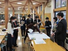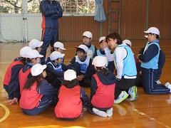 アイスブレーキングも兼ねて、最初に体育館で鬼ごっこと手をつないでミス無くゴールするという2つのゲームを行いました。うまくいかないときに作戦タイムをくり返し、意見を出して話し合うこと、一つになること、声を出すことの大切さを学びました。