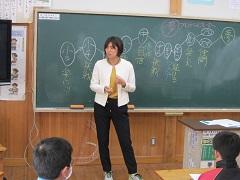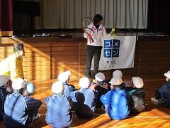 その後は、教室に戻り、長谷川さんの「プロテニスプレーヤーになる」という夢の実現までのお話から、「楽しむ」「挑戦する」「仲間」という3つのことを教えて頂きました。また、がんばって続けてきたことが自信となって、苦しいときに頑張れたという話しも心にしみました。