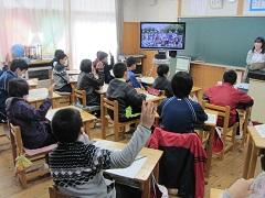 町税務課の職員の方から、「税金にはどんな種類があるのか」、「税金がどんなことに使われているのかな」どについて、クイズ形式で教えていただきました。その後、税金が無くなるとどうなるか、分かりやすいアニメのDVDを視聴しました。