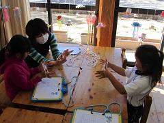1年生は開会行事の進行から、閉会行事での一人一人の感想発表まで、とても立派にできました。特に、感想発表は一人一人すばらしい発表でした。けん玉、こま回し、おはじき、かるた、あやとり、お手玉を時間を決めてローテーションで、全部楽しむことができました。