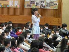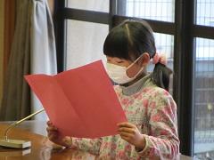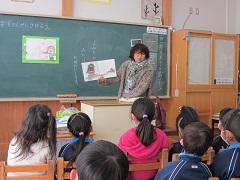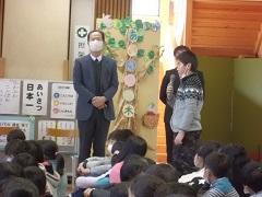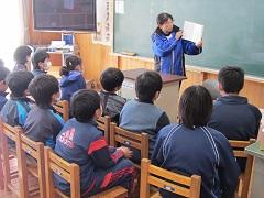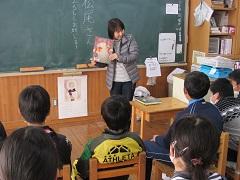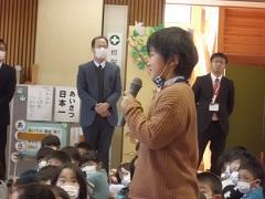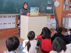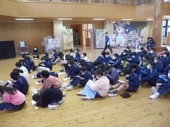 1年生は三武さんが「うしかたと やまんば」「へんしんプレゼント」、2年生は大貫さんが「カラスのはねはなぜくろい?」、3年生は皆川さんが、「ゆきのひは あついあつい」「ぽんぽん山の月」、4年生は仲山さんが「舌長ばあさん」「もみの木のねがい」、⒌年生は小松さんが「キツネのでんわボックス」、6年生は松尾さんが「賢者のおくりもの」「クリスマスにはおくりもの」「はつゆめちょうじゃ」「ぼく しないもん」を読んでくださいました。