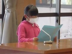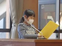 児童代表の発表は、1年生の大久保藍奈さん、2年生の岩村結彩さん、3年生の河俣美羽さんが上手に反省と目標を述べました。いつものように、感想を3名の児童が発表しました。