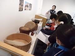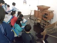 1月17日(水)、3年生が校外学習で、芳賀町の総合情報館(知恵の輪館)に行ってきました。社会科で学習している「変わってきた人々の生活」の一環で、昔の道具などを見学してきました。綿から種を取り出す道具もやたらいと洗濯板なども体験しました。