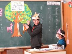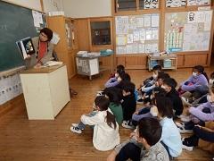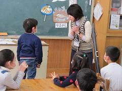 1年生は松尾さんが、「ちいさなくれよん」「くれよんのはなし」「あかいけいと」、2年生は三武さんが、「すてきな三にんぐみ」「がいこつさん」「やいたやいた」、3年生は大貫さんが、「鬼さんこちら手の鳴る方へ」「なかよしゆきだるま」、4年生は皆川さんが、「ないた盗ぞく」「かさどろぼう」、5年生は仲山さんが「おにの ここずな」「おにころ」、6年生は小松さんが「紙芝居ないたあかおに」「悪魔のりんご」を読んでくださいました。大型絵本があったり、本の中の絵を見つけたりと様々な工夫をしてくださいました。