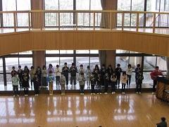 3年生の最初のあいさつがとっても大きく、さわやかな雰囲気で集会が始まりました。3年生は「ゆかいな木琴」を大山舞桜さんのピアノ伴奏と横山聖南さんの指揮で上手に演奏しました。2曲目は「お菓子の好きな魔法使い」を効果音やセリフの入った楽しい演奏でした。