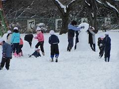 3時間目、子どもたちが校庭に飛び出してきました。雪だるまづくりに挑戦したり、雪合戦をしたりと楽しんでいました。雪だるまをバックに全員で記念撮影をしている学年もありました。その一方、⒌年生、6年生は、体育館へ向かう通路の雪かきをしてくれていました。教頭先生がお願いすると、二つ返事が返ってきて、素早く取りかかってくれました。あっと言う間に終了し雪遊びに合流していました。さすが小貝小のリーダーたちだと感心しました。なお、明日の朝も道路の凍結が予想されるため、安全を心がけ、十分注意をして登校するように指導したいと思いいます。