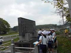 歩きながら道の脇にあるいろいろな物を見つけ、記録していました。桜川の圃場整備記念碑の前で、集合写真を撮って、元気に帰ってきました。また、地元小貝地区について、知識が増えました。