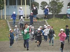 今回は避難の仕方を確認するために、抜き打ちではなく周知をして実施しました。最初の放送による第一次避難で机の下に入るとこらから、第1避難場所に整列するまで、担任の指示通りに落ち着いて実施できました。避難開始の指示から、全員避難完了の連絡まで3分40秒でした。