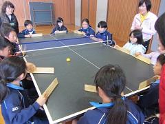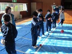 障害者スポーツの体験では、卓球バレーとコントロールアタックを体験しました。最初はアイマスクをして、その後はアイマスクを外して行い、楽しみながら福祉の心を育むことができました。