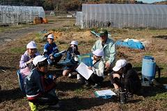 この日は、文谷の海老澤雄一さんのお宅をお邪魔し、トマト農家の仕事について教えていただきました。接ぎ木の仕方やトマトの出荷先、夏の収穫時期の様子など詳しく説明していただきました。子どもたちは、頑張ってメモしてきたことをもとに、まとめを行っています。
