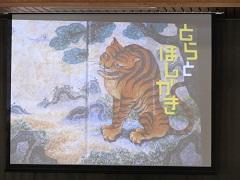 続いて、今年も「みなみかぜ」の皆さんの読みきかせがありました。今年は「とらとほしがき」という韓国の物語でした。画像と音楽が効果的で、迫真の語りを更に盛り上げていました。