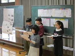 発表は6つのグループが、「畑・農業」「市貝町立図書館」「田野辺の天祭」「芝ざくら公園」「道の駅サシバの里いちかい」「杉山の太々岩戸神楽」について、インタビューしてきたことをまとめたり、クイズを出したりといろいろな工夫が見られた発表でした。3年生のプレゼンテーション能力を感じました。