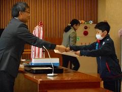 業間の時間に、今学期最後の賞状伝達を行いました。