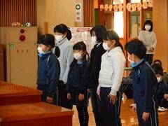 校長の話では、教育目標の振り返りをした後、読みきかせ「みなみかぜ」の皆川榮子様からいただいた手紙を紹介しました。「読みきかせの時に、たくさんの1年生が手を挙げて、思い思いの感想を発表してくれて感動した。これからの活動の励みになった。」という趣旨の温かいお手紙でした。一生懸命に話を聞いて、自分の考えを素直に発表することで、考えが深まるだけでなく、自分も、周りの人も、話してくれた人も温かい気持ちになれることを話しました。最後に、家族と楽しい冬休みを過ごし、元気に始業式で会うことを約束しました。