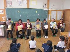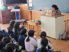 1年生は仲山さんが「わしにさらわれたこども」「うそ」を、2年生は小松さんが「ワタナベさん」「あしたうちにねこがくるの」「あらまっ!」を、4年生は三武さんが紙芝居「うしかたとやまんば」「オニじゃないよおにぎりだよ」を、5年生は大貫さんが「わたしのせいじゃない」「ミカちゃんのひだりて」を読んでくださいました。連日の読みきかせに、子どもたちは大喜びでした。