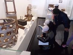 「古くから残る暮らしに関わる道具、それらを使っていたころの暮らしの様子」について調べることが目的です。子どもたちは、良く説明を聞き、しっかりメモし、綿繰り機や電話などの実物にふれてきました。昔の人の知恵や昔の人々の願い、今と昔の生活の違いについて気づくことができたようです。