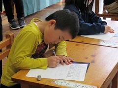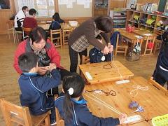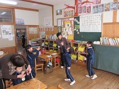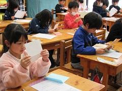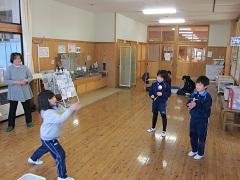 1年生は案内や進行、説明やあいさつなど、それぞれの係を礼儀正しく行い、おじいちゃんおばあちゃんに「こま回し、竹とんぼ、あやとり、おはじき、お手玉」を教えていただき、楽しい時間を過ごしました。最後に、お礼の手紙やメダルをお渡しし、玄関でお見送りをしました。7名の皆様にはお忙しい中、お世話になりました。