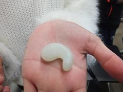 遺跡や、出土した遺物について説明を聞いたほか、勾玉づくりを体験しました。柔らかい滑石を材料に、古墳時代の装飾品かつ祈りの道具である勾玉をつくり、お土産に持ち帰りました。来年学習する歴史の授業のときに、思い出してほしいと思います。