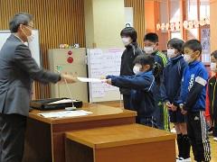 本日、3学期学級委員の任命と、統計グラフ栃木県コンクールの賞状伝達を行いました。