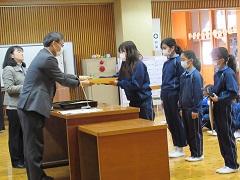 2学期後半から今日まで、放課後や休みの日にも頑張って研究をしてきた3名に拍手を送りたいと思います。