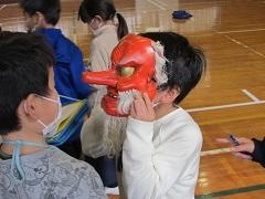 今日は市貝町無形民俗文化財に指定されている、杉山太々神楽保存会の皆様にお越しいただき、体育館で「五行の舞」を見せていただきました。鑑賞の後、太々神楽を行う目的やいつ頃誰が始めたのか、舞の内容、活動の様子などについて教えていただきました。3年生は、実際に使用している天狗やひょっとこ、鬼など様々な種類のお面をかぶることができ、興味津々でした。質問コーナーではたくさんの質問に対し、丁寧に答えてくださいました。いつものように、真剣に聴いて、しっかりメモする3年生でした。